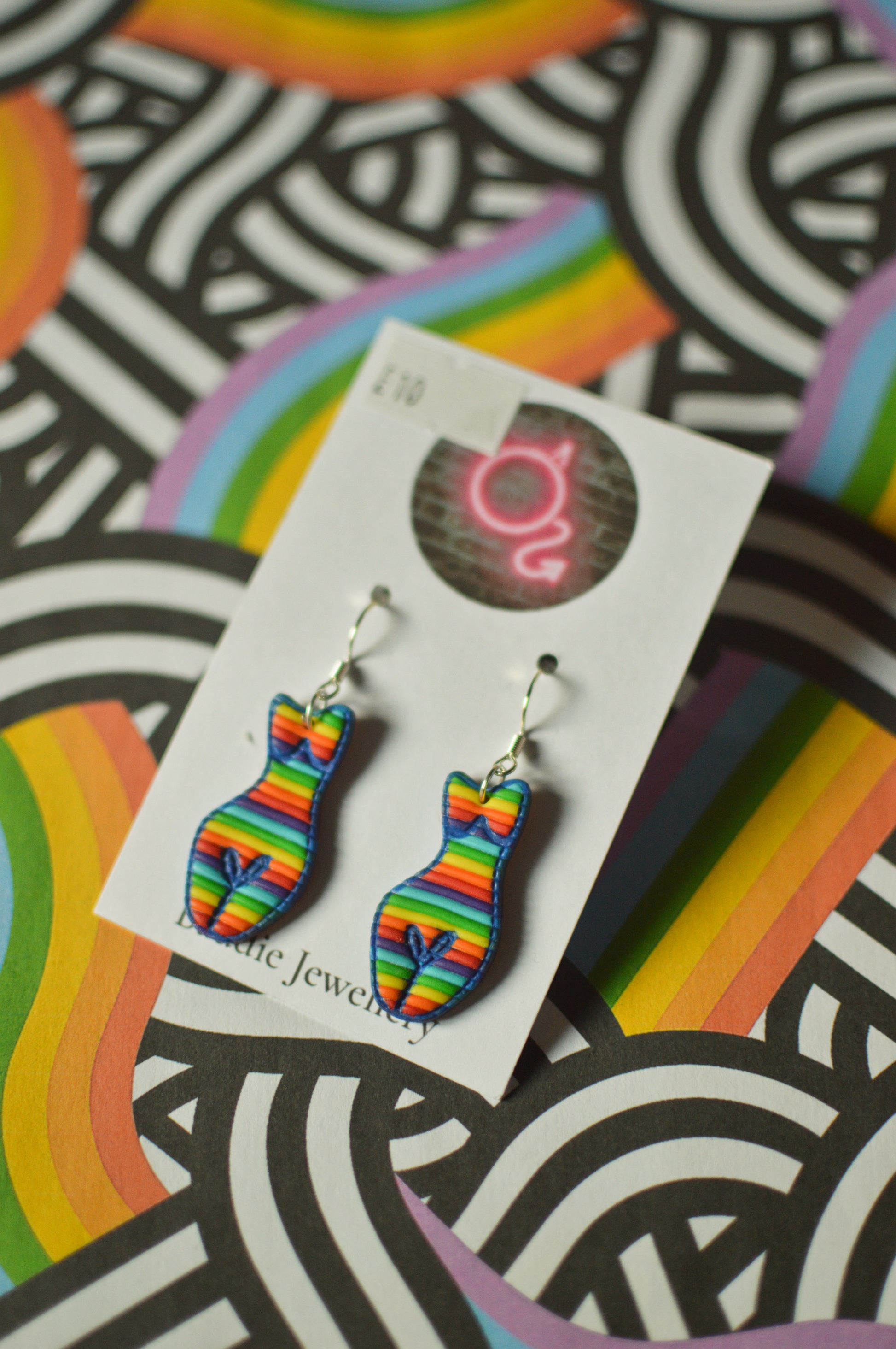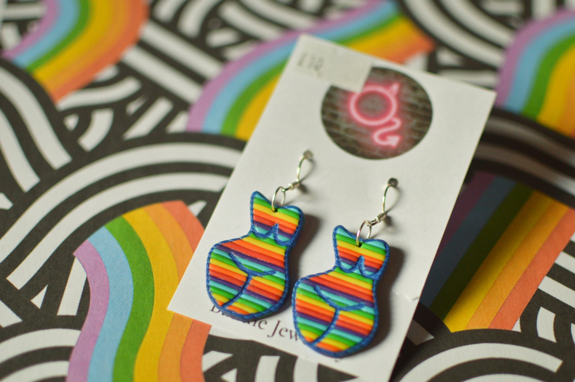 Expertly crafted with polymer clay, these Rainbow Body Earrings showcase a vibrant spectrum of color. The unique designs, available in two shapes, are handcrafted for a one-of-a-kind accessory that will brighten any outfit. Add a playful touch to your style with these lightweight, statement earrings.