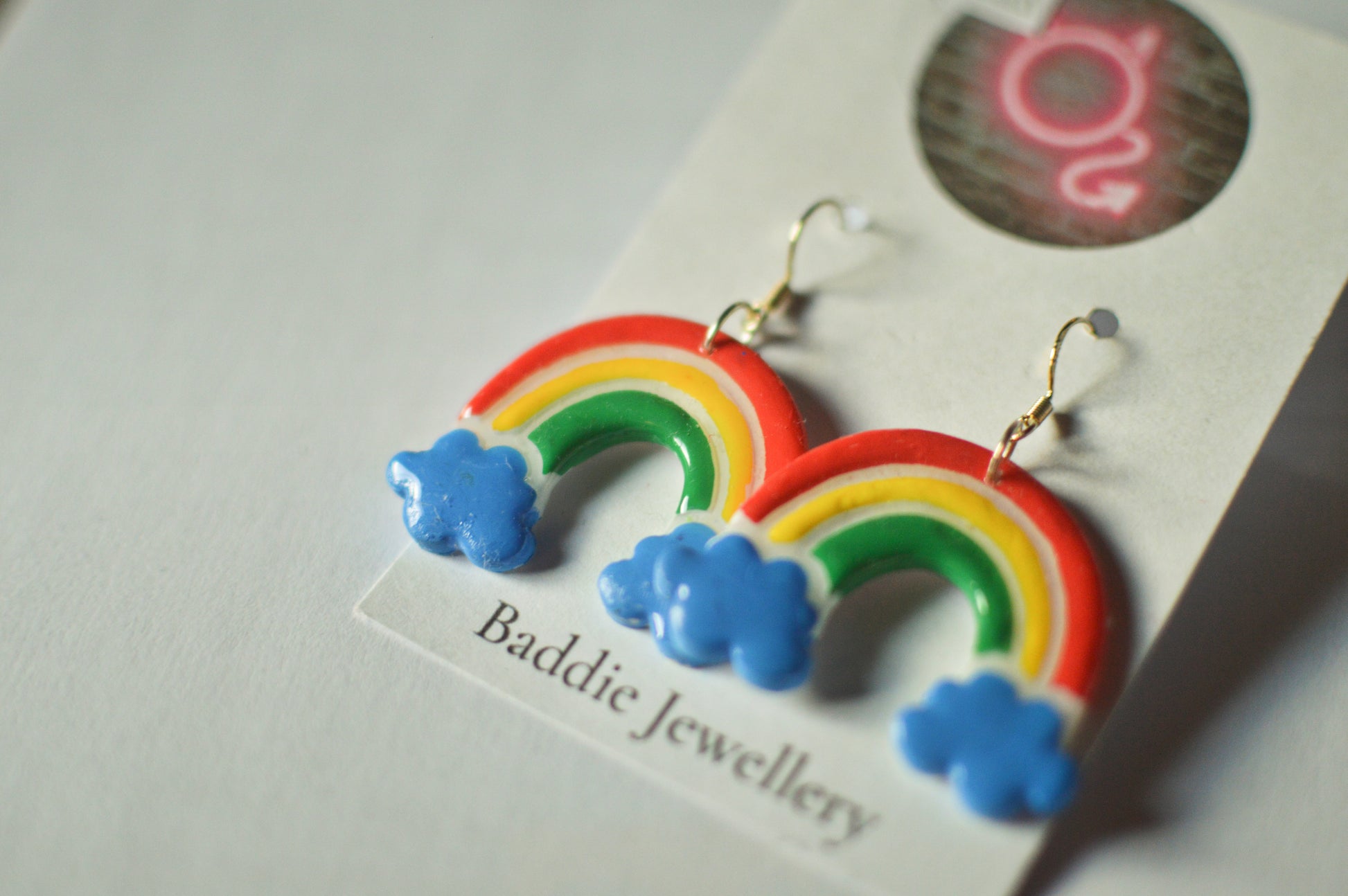 Add a pop of color to any outfit with our handmade Rainbow Earrings! These unique earrings are made from lightweight polymer clay, so they won't weigh your ears down. Perfect for any occasion, these earrings are sure to brighten up your day (and your jewelry collection)!